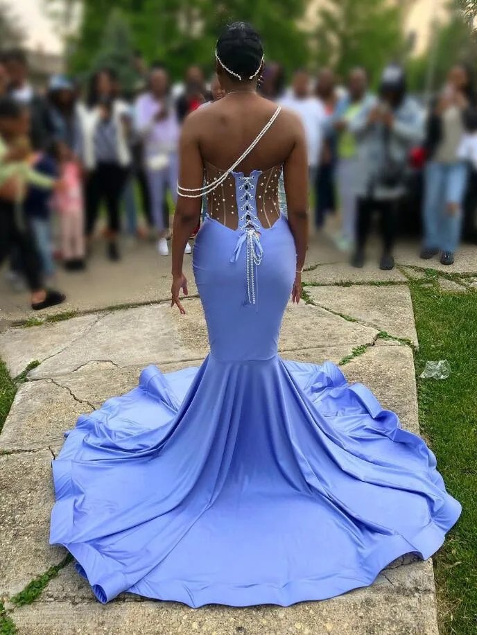 Crafted from luxurious ModaL satin, this lavender prom dress is designed to offer the perfect balance of style and comfort. The dress features a sleeveless, sweetheart neckline and a trumpet/mermaid silhouette that flatters your figure. The beading and crystal embellishments add a touch of sparkle, while the sweep train completes the look. Suitable for all ages, it is a timeless option for your prom, birthday, or any formal event.