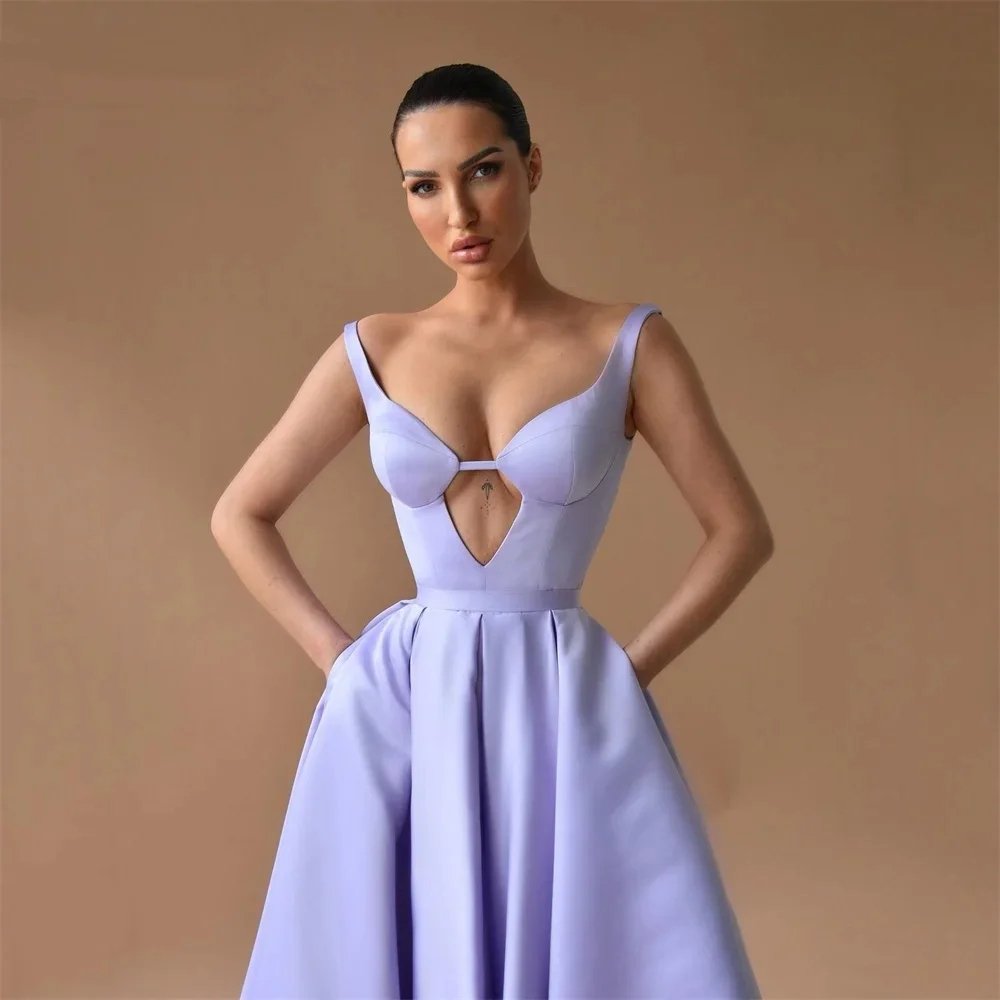 This lavender prom dress combines comfort, luxury, and modern style. The satin fabric feels smooth and looks elegant, while the A-line silhouette flatters various body types. The V-neckline adds a touch of sophistication, and the side slit provides ease of movement and a contemporary edge. Whether you’re attending prom, a wedding, or a special evening event, this lavender dresses for prom will make sure you look effortlessly glamorous.